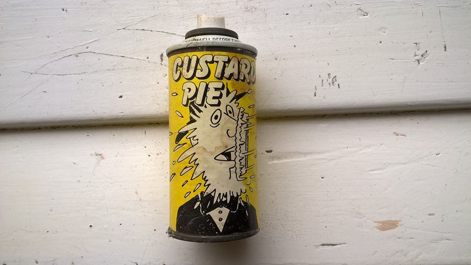 Novelty 'Custard Pie' foam spray, probably very toxic.